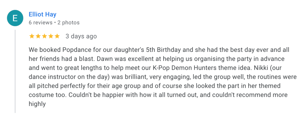 "Good friend over for dinner last night – raving about Popdance Tots parties at Everyone Active – her 3 year old LOVES it #greatwork!”