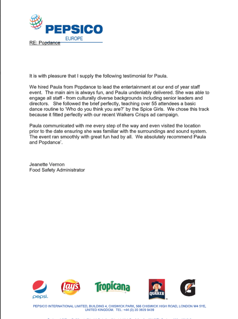 “We are loving Popdance’s work! I urge any business that wants to get their team motivated (and sweaty) to get hold of Popdance – great fun!”
